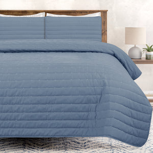 Solid Color Washed Microfiber Quilted Coverlet Set