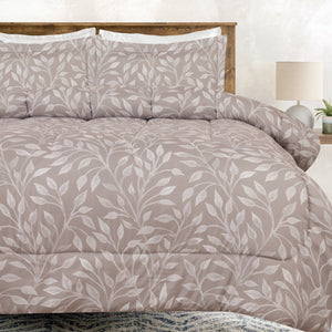 Tan Leaf Print Comforter Set