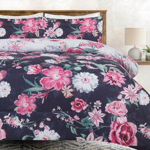 Reversible Black Pink Floral Print Comforter Set